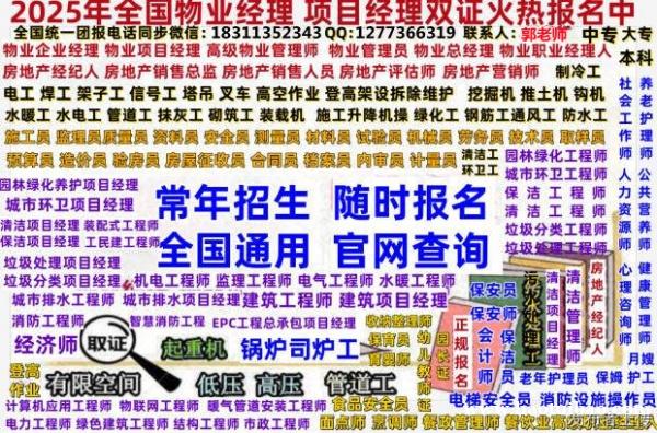 物业经理,项目经理,物业管理员,物业管理师,房地产经纪人证报名学习时间报名咨询郭老师,